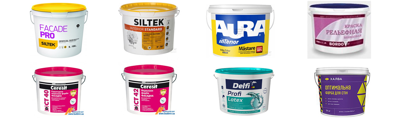 - Характеристики и количество: DELFI PROFI LATEX, ОПТИМАЛЬНАЯ КРАСКА "ХАЛВА", КРАСКА SILTEK INTERIOR STANDART, AURA MASTARA