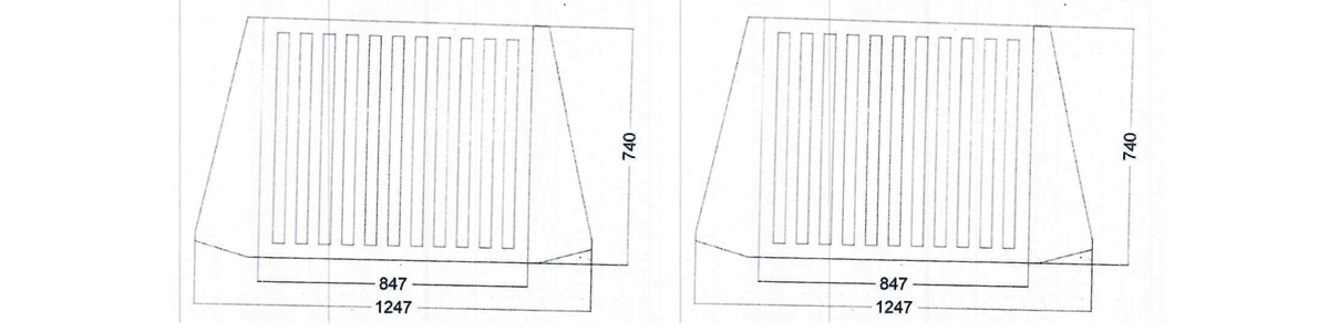 - Боковые панели - косые (50 - 200мм). Материал - алюкобонд, 3мм (панели из алюминиевого композитного материала). RAL 7016.