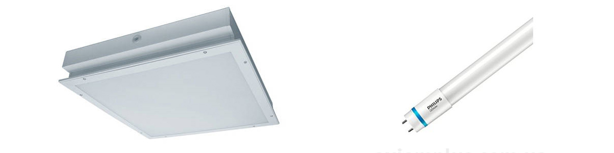 - Встраиваемые светильники для внутреннего освещения для светодиодных ламп Т8 на базе корпусов люминесцентных светильников.